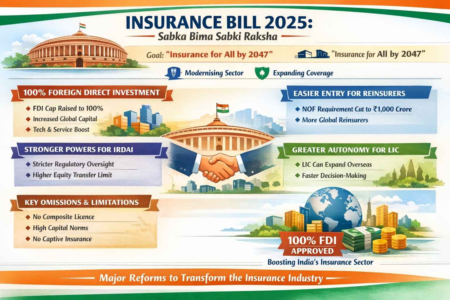 The Union Cabinet has approved the Sabka Bima Sabki Raksha (Amendment of Insurance Laws) Bill,…