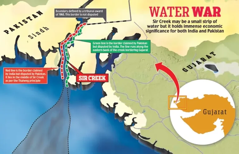 - Sir Creek is a disputed estuarine marshland between Gujarat (India) and Sindh (Pakistan).