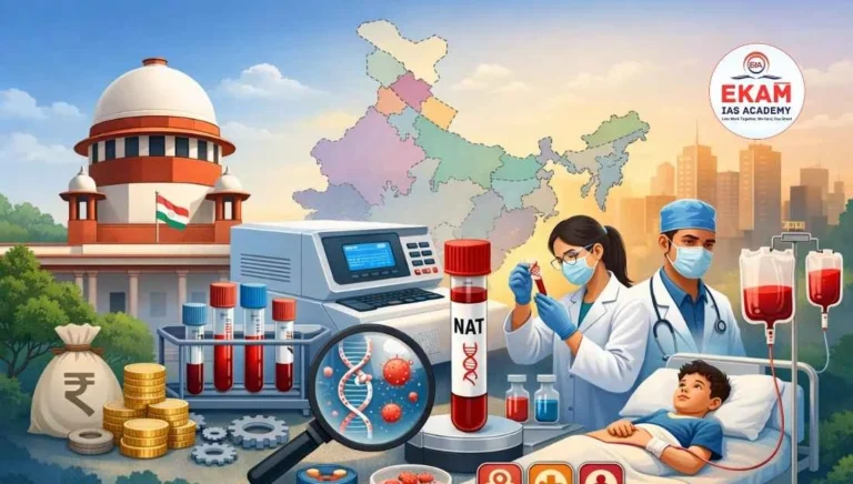 The Supreme Court of India is examining whether the Nucleic Acid Test (NAT) should be made compulsory in blood banks to ensure safer blood transfusions, following petitions citing risks of transfusion-related infections — a public health issue frequently analysed in UPSC coaching in Hyderabad.
