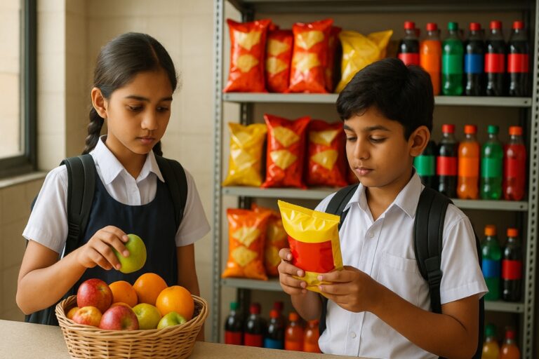 • Improve Food Environments: Ban/restrict junk food sales inside and near schools. Ensure availability of fruits, vegetables, and fresh meals in schools.